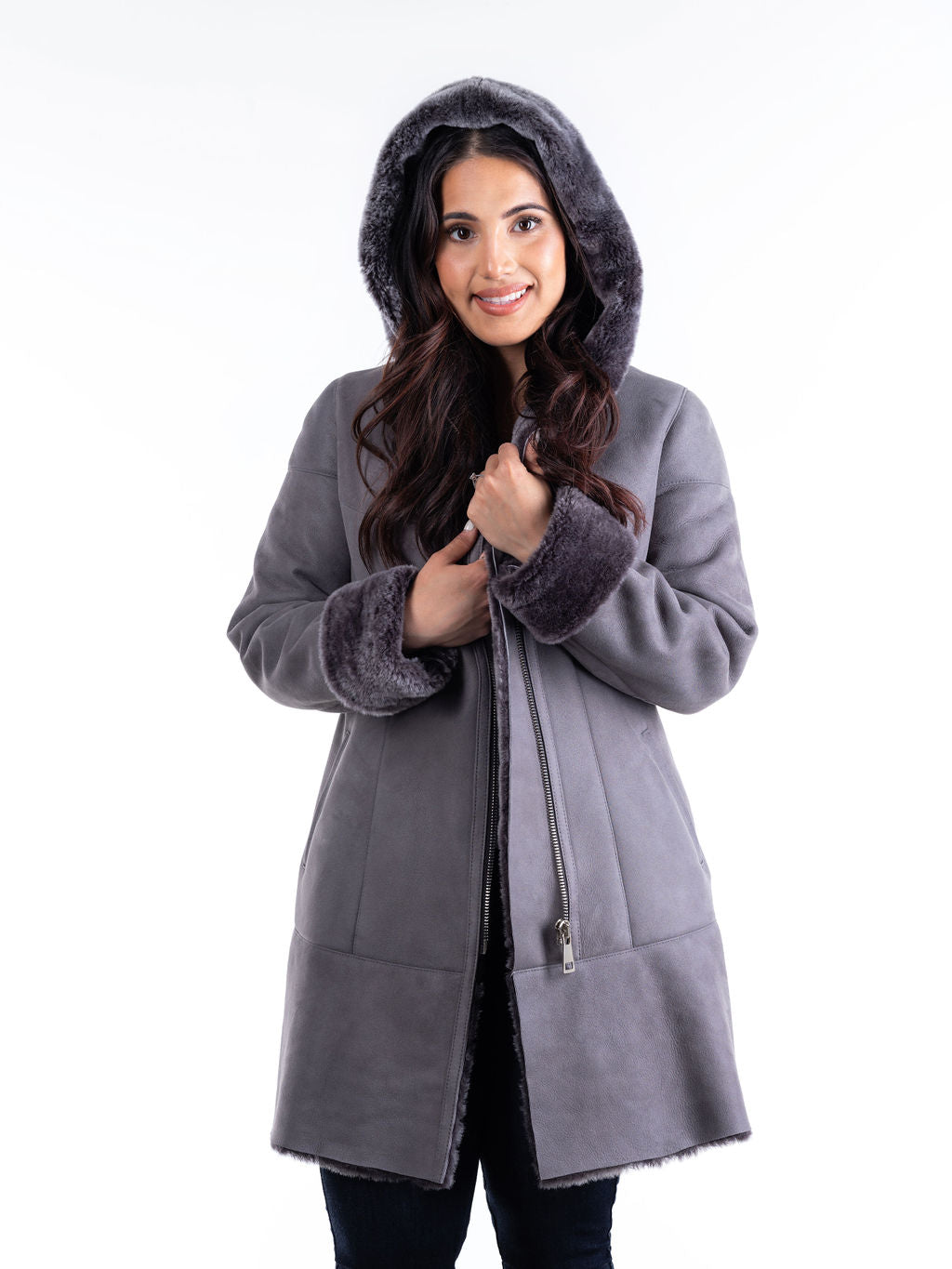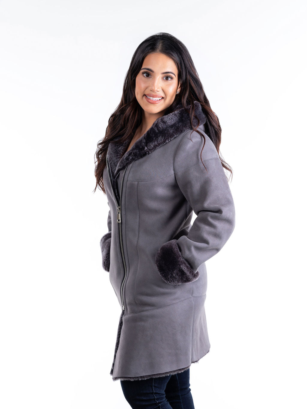 The Sara coat is perfect for everyday wear and a special evening out. Warm and soft, you'll turn heads in this simple yet elegant shearling sheepskin coat. Cuffs are adjustable. Zip-front closure. Made in Poland. Available in sizes 34-52. Use the size chart to find your perfect fit!